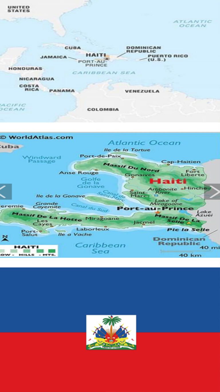 It is a Caribbean nation/ island; located between the Dominican Republic (to the East) and Cuba (to the west); it is approximately 715 miles southeast of Miami, Florida and it is approximately 1,850 miles southeast of Sioux Falls, South Dakota, United States of America.